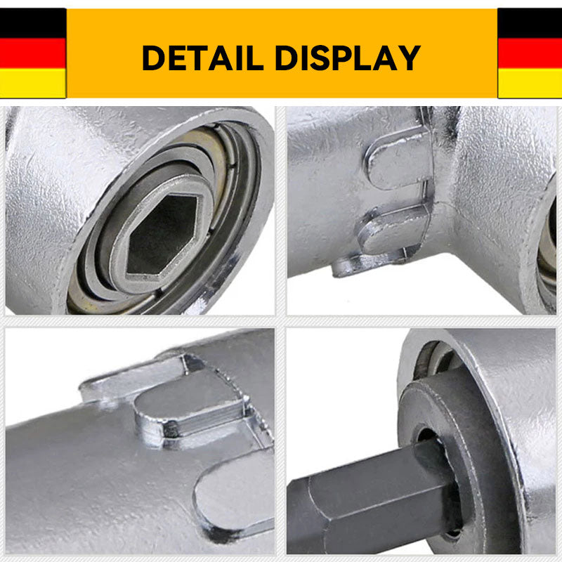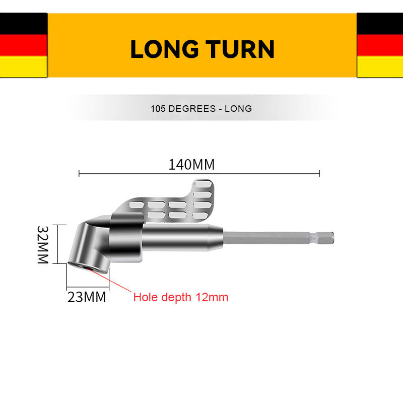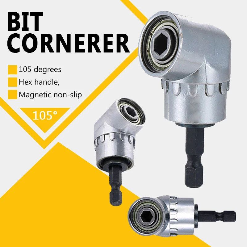 - ✅ Chrome vanadium steel 105° angle extension, high hardness angle drill holder, anti-rust. Durable die cast body with 3 ball bearings for long life. Built with strong magnets for good holding power, this right angle drill attachment is easy to use and prevents falling out.
