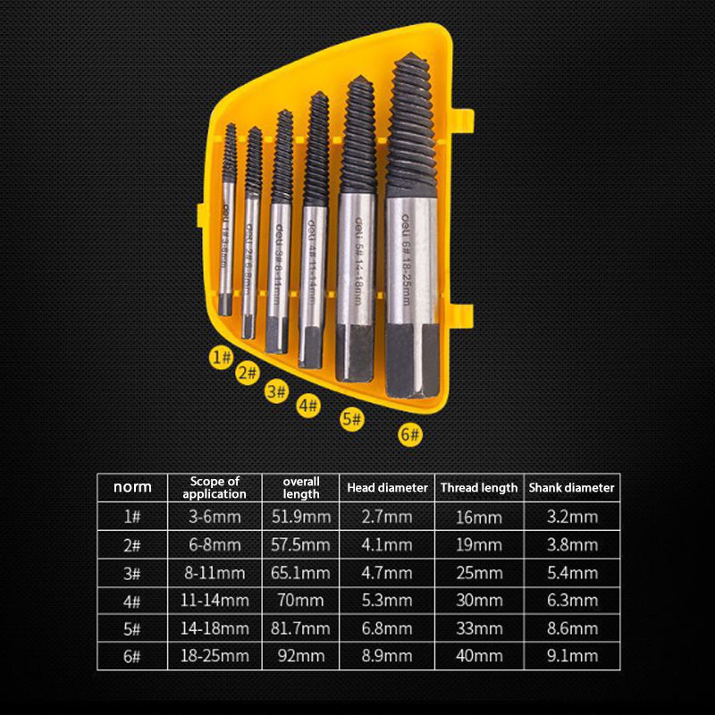 Say goodbye to frustration and wasted time with our broken-head screw extractor, a powerful 6-piece screw extraction tool set designed to tackle the toughest screws and bolts. Whether you're a professional craftsman or a DIY enthusiast, this multi-tool set is a must-have addition to your toolbox.