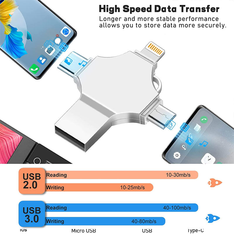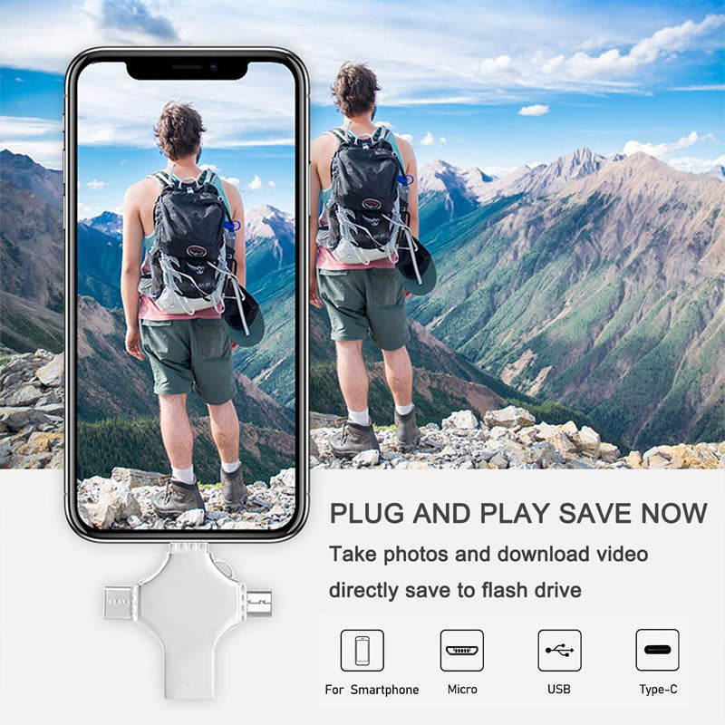 Experience unrivaled convenience and versatility with our USB Flash Drive 4-in-1 Computer Phone Hi-Speed USB3.0 Multipurpose 64GB Large Capacity 2.0 USB Flash Drive Type-C. This cutting-edge USB flash drive revolutionizes the way you transfer and store data by combining four essential functions into a compact and sleek design.
