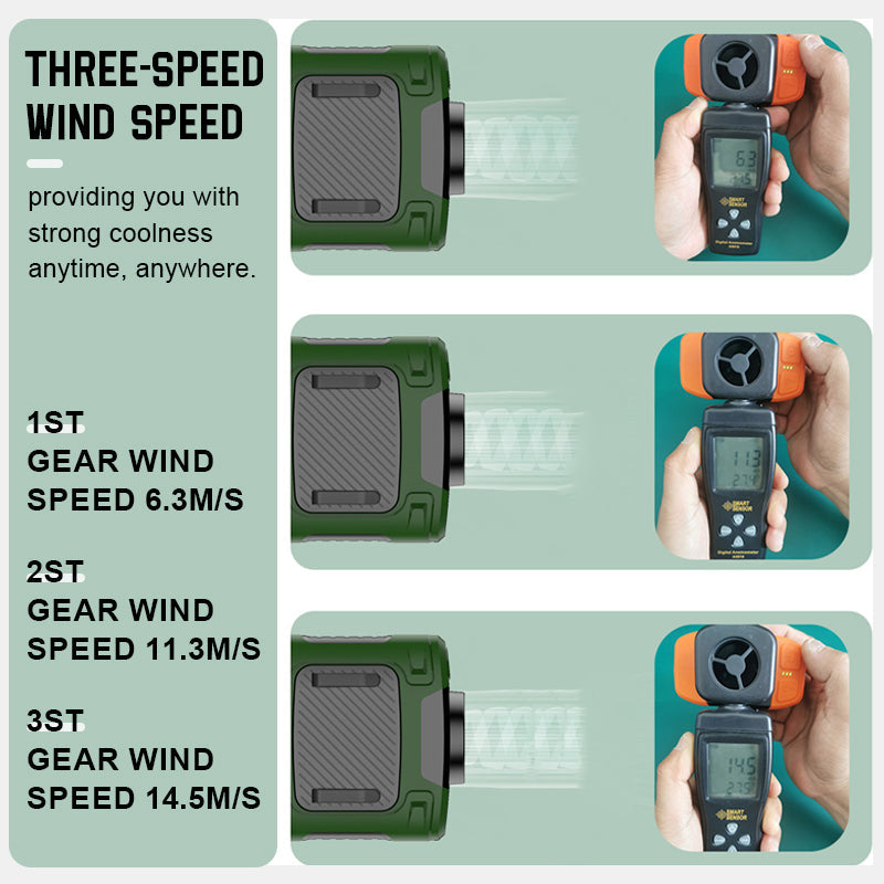 💨 Three-speed wind speed: Three-speed adjustable wind speed design to meet the needs of different occasions, providing you with strong coolness anytime, anywhere.